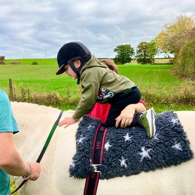 Hippotherapy is used in conjunction with ‘mainstream’ physiotherapy. It allows a child to have fun, form a bond with the pony and feel it is not all ‘stretches’ or ‘core stability’ work. Conditions that can be modified with hippotherapy are abnormal tone, impaired balance reactions, postural asymmetry, decreased mobility and many others. The child needs to have some reasonable head control and be able to sit with support, to gain the most from hippotherapy as it allows us to put them in a variety of positions.