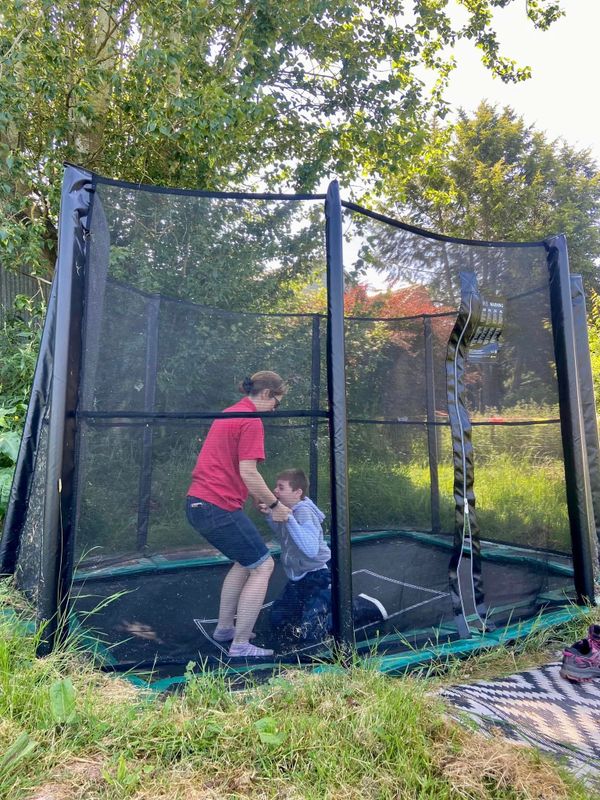 At The Vauld there is a large, purpose built, ground level trampoline with secure netting. It is used to teach the child to trampoline using the momentum, rhythm and reactiveness of the trampoline bed to provide external stimulation and using variety of positions to help a child learn core stability, balance, co-ordination and communication.